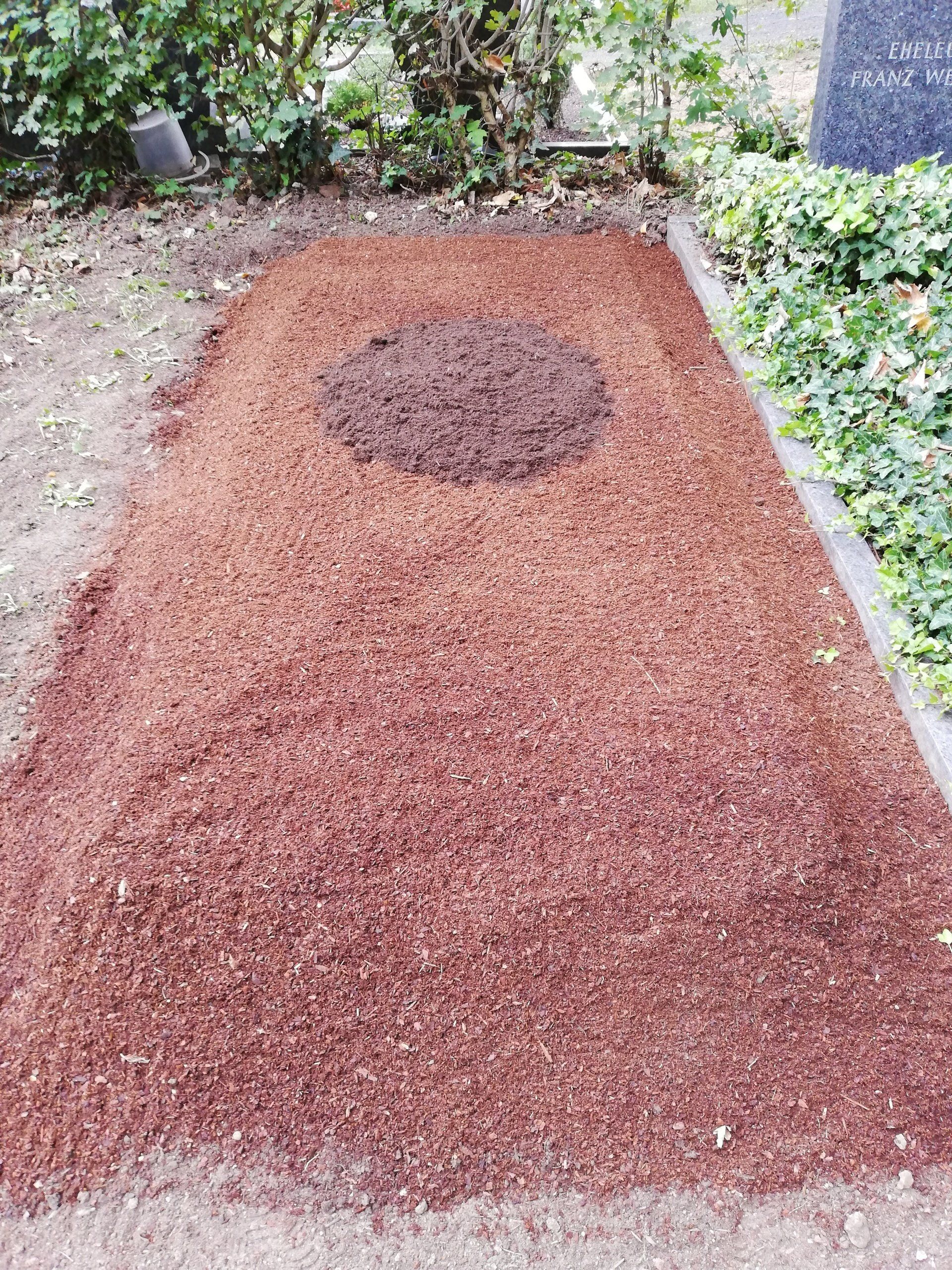 Die verwelkten Gestecke und Kränze werden entfernt um einen Grabhügel zu errichten. Hintergrund für diese Hügelaufmachung, die meist für einen Zeitraum von ca. einem halben Jahr angelegt wird, ist die Tatsache, dass nach der Beisetzung entstehende Hohlräume um den Sarg Zeit haben, sich zu setzen.